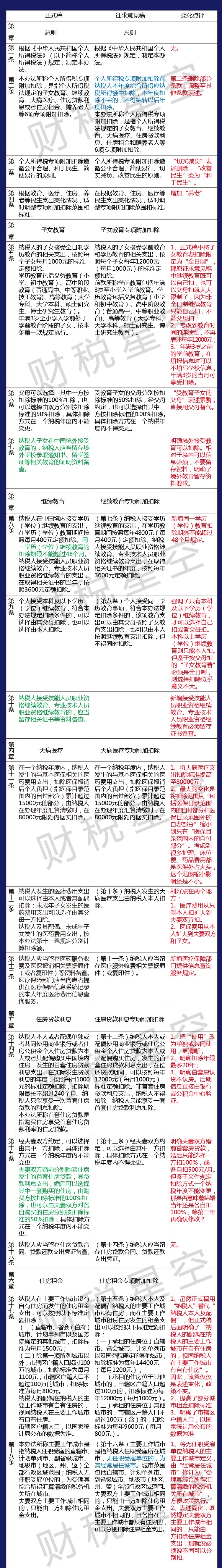 新专项附加扣除暂行办法与征求意见稿逐条对比