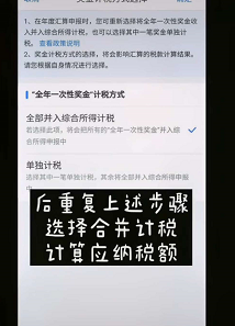 一、政策规定财税〔2018〕164号文件规定,在2021年12月31日前,居民个人取得全年一次性奖金,符合《国家税务总局关于调整个人取得全年一次性奖金等计算征收个人所得税方法问题的通知》(国税发〔2005〕9号)规定的,可以选择不并入当年综合所得单独计算缴纳个人所得税,也可以选择并入当年综合所得计算纳税。《国家税务总局关于办理2019年度个人所得税年度汇算清缴事项的公告》(国家税务总局公告2019年第44号)及其解读稿规定,2019年度汇算不涉及纳税人按规定选择不并入综合所得计算纳税的全年一次性奖金等所得。纳税人若在2019年取得全年一次性奖金时是单独计算纳税的,年度汇算时也可选择并入综合所得计算纳税。(1)纳税人在2019年取得全年一次性奖金时是单独计算纳税的,可以选择继续单独计税,不并入年度汇算清缴。(2)对于在2019年取得全年一次性奖金时是单独计算纳税的,年度汇算时还可重新选择并入综合所得计算纳税。二、员工如何自行选择(建议发给员工看看)本文转自:小陈税务。版权归原作者所有,如有不妥之处请联系处理。
