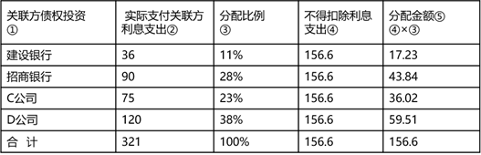 不可扣除的利息支出=261×(1-2/5)=156.6
