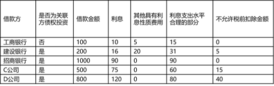 1、建设银行贷款由境内A企业提供担保,A企业实际税负为25%,由于该企业的实际税负不高于关联方,超比例部分利息支出允许扣除。