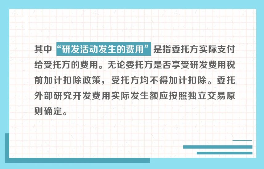 近年来,研发费用加计扣除政策持续优化完善,呈现出年年加力、步步扩围、层层递进的特点,对支持企业投入研发、鼓励科技创新起到重要作用。为帮助纳税人全方位学习了解相关政策规定,我们制作了“研发费用加计扣除政策系列图解”。今天带你了解:企业委托研发费用的有关规定↓