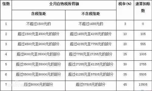 现行工资、薪金所得适用个人所得税累进税率表