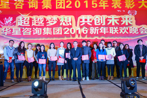 “欢歌笑语迎新年,其乐融融共联欢”,转眼间2015年已迈着坚定的步伐离我们而去,而充满希望的2016年迎面走来,在这新春即将到来之际,华星咨询集团为了感谢全体员工一年来的辛劳和付出,于2016年1月28日下午四点在苏州独墅湖世尊酒店召开年终表彰大会和新年联谊会。华星咨询集团董事长陈景庚先生就回顾2015,展望2016发表了讲话,过去一年,华星咨询集团在审计、国际会计、税务、股份制改革及上市服务、工程造价审核与咨询、资产评估与资产管理、财经培训等多个专业领域发挥了重要作用,未来一年,希望大家团结一致,努力奋斗,认真服务客户,踏踏实实做人,争取实现人生价值。华星是一家人,希望大家明天会更好,家庭明天会更好,华星明天会更好!