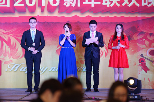 年度表彰大会结束后,华星新年联谊会正式开始。华星咨询集团董事长及全体工作人员和家属在喜庆、祥和、热烈的氛围******聚一堂,主持人沈俊杰、王呈玉、李权、史翠四人登场,华星新年联谊会拉开帷幕。
